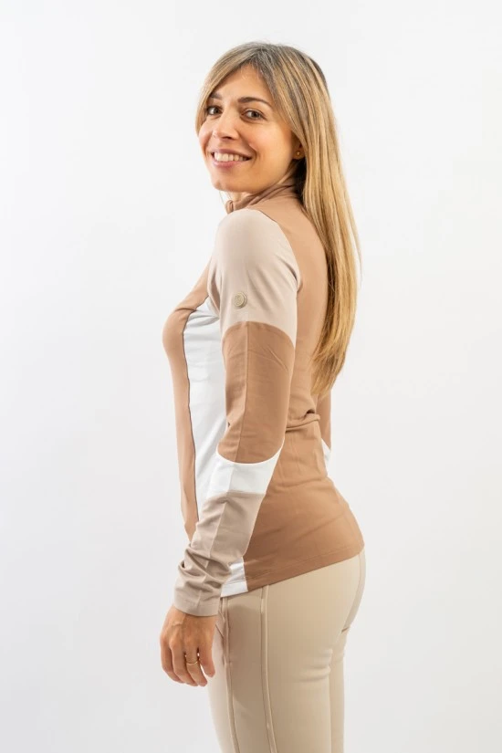 Vana è il sottotuta mezza zip di Bogner realizzato in tessuto esterno elasticizzato e micro felpato. Arricchito da inserti in contrasto di colore che donano dinamicità e vivacità al capo. Caldo e traspirante è ideale sotto la giacca da sci.