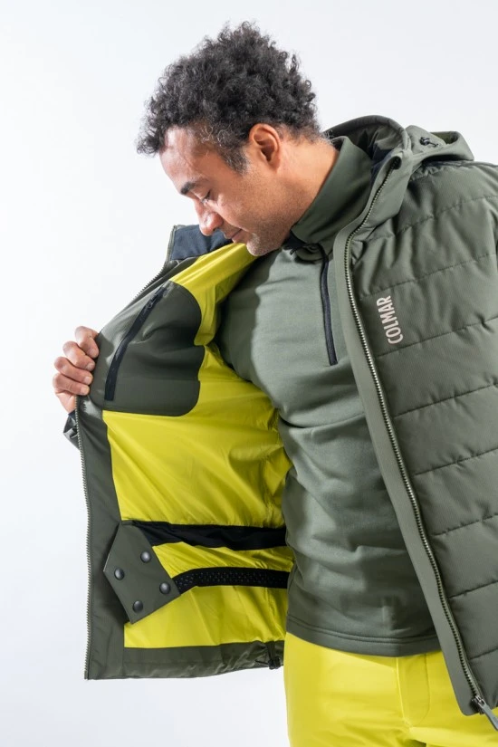 Giacca in multimateriale con cappuccio staccabile. Realizzata in ripstop elasticizzato derivante da materiale riciclato. Particolramente comfortevole e calda grazie alla imbottitura in ovatta di ultima generazione. Dal look sportivo è impermeabile e traspirante, adatta anche alle condizioni più estreme.