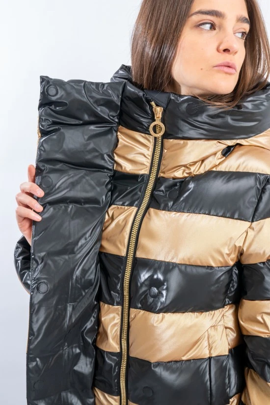Giacca sci Dazzle by Goldbergh. Caldo piumino corto con fondo elastico per una migliore aderenza e protezione al vento. Realizzato in morbido tessuto a base poliuretanica con effetto metallico che ne esalta i colori. La fascia interna elasticizzata permette di portarlo con sè in ogni occasione. Cappuccio fisso con collo alto ed avvolgente per affrontare al meglio anche le condizioni più estreme.