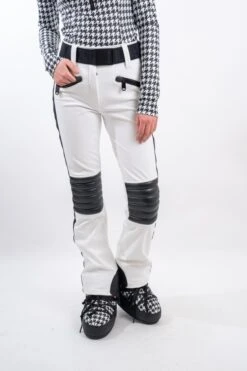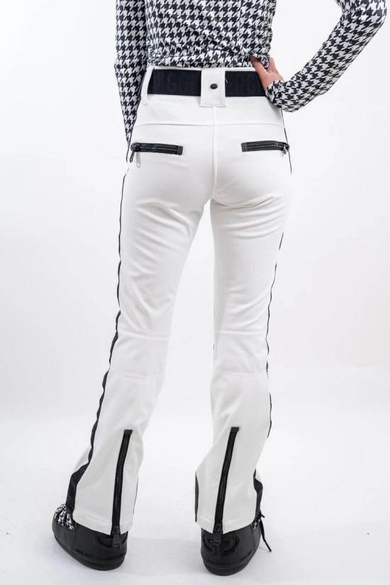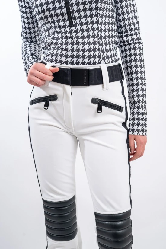 Pantalone in vita in tessuto elasticizzato high tech dal gusto retrò. Impermeabile e caldo, prestazioni senza compromessi. Cintura in vita regolabile. La costruzione 3D garantisce ottima aderenza e ne esalta la vestibilità. Arricchito da fascia laterale in tessuto stretch con ricamo lettering istituzionale. Ginocchio preformato con inserti in ecopelle.