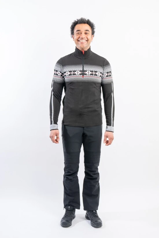 Sottotuta mezza zip in tessuto DH-Tech 400 high performance. Prodotto realizzato con un filato a base di polipropilene estruso caratterizzato da un filo cavo internamente. Questa inedita soluzione rigorosamente Made in Italy rende il prodotto compatto ed elastico per un comfort ed una vestibilità senza eguali, proprio come una seconda pelle.