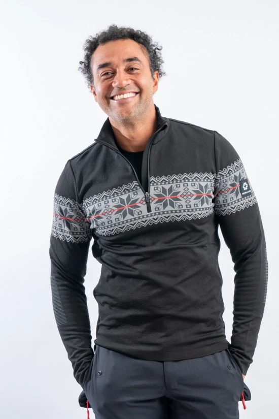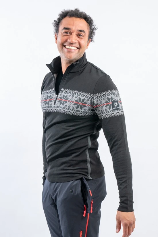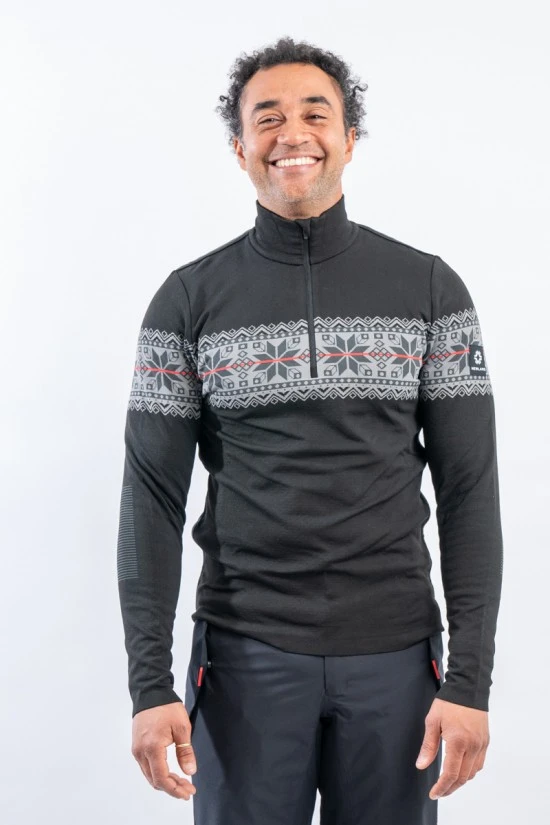Sottotuta mezza zip in tessuto DH-Tech 400 high performance. Prodotto realizzato con un filato a base di polipropilene estruso caratterizzato da un filo cavo internamente. Questa inedita soluzione rigorosamente Made in Italy rende il prodotto compatto ed elastico per un comfort ed una vestibilità senza eguali, proprio come una seconda pelle.