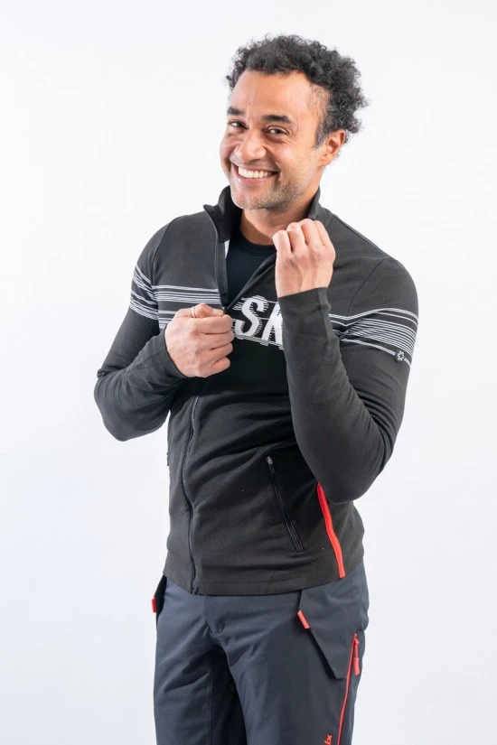 Sottotuta mezza zip in tessuto DH-Tech 400 high performance. Prodotto realizzato con un filato a base di polipropilene estruso caratterizzato da un filo cavo internamente. Questa inedita soluzione rigorosamente Made in Italy rende il prodotto compatto ed elastico per un comfort ed una vestibilità senza eguali, proprio come una seconda pelle.