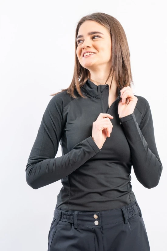 Sottotuta mezza zip in tessuto elasticizzato e felpato. Logo istituzionale stampato sul petto. Vestibilità slim, caldo e traspirante è il capo ideale da indossare sotto la giacca da sci e per praticare ogni sport all’aria aperta.