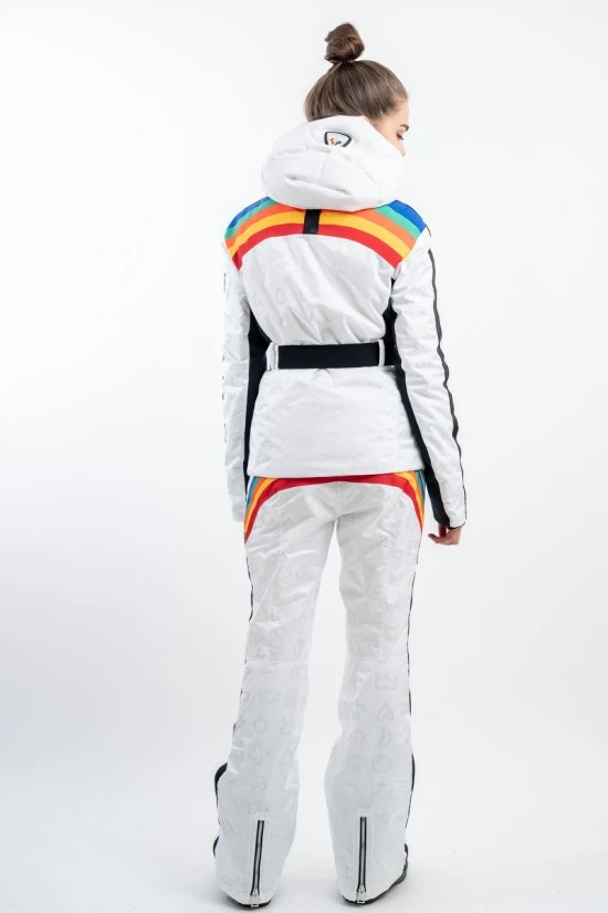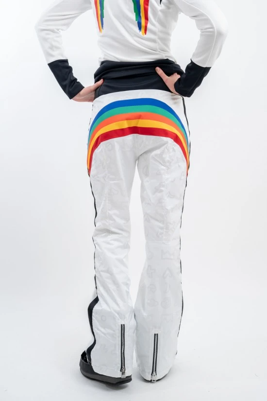 Nata dalla collaborazione di Rossignol con lo stilista Jean-Charles de Castelbajac la nuova linea, creativa e sorprendente, Ski in Sky. Caratterizzata da un gioco di contrasti tra forme e colori che incarnano tutta la fantasia dell’artista. I pantaloni sci W rainbow sono realizzati in tessuto 4-way stretch per garantire massima libertà di movimento. La vita alta con l’inserto elastico assicurano un comfort ottimale. Imbottito in morbida ovatta HOT AIR è caldo ed adatto in ogni condizione.