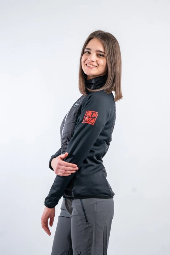 Pile tecnico fullzip. Leggera imbottitura nel busto. Tessuto 4way stretch nelle maniche e nei fianchi. Arricchito dai loghi “Moena-Dolomiti” cucito sul petto e “Val di Fassa” stampato sulla manica. Due tasche laterali chiuse da zip. Comodo e pratico, utile alleato per le tue gite outdoor.