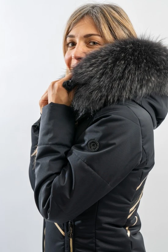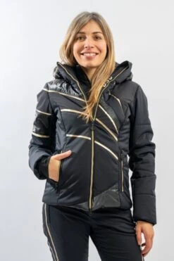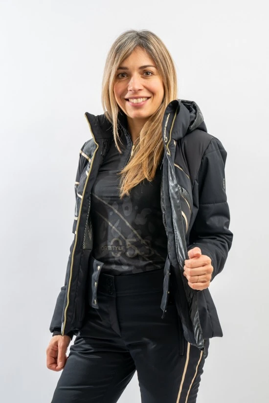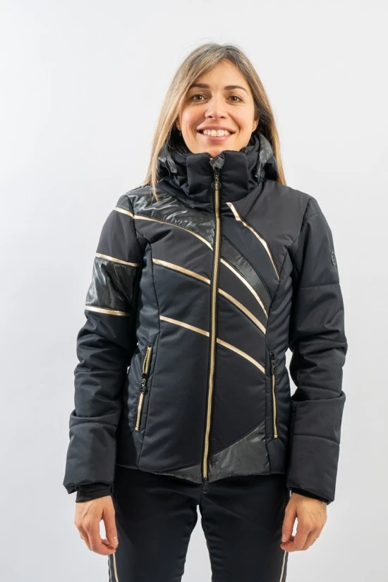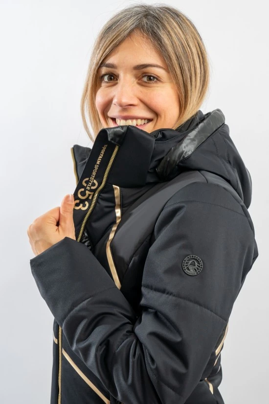 Elegante e ricca di dettagli la giacca sci Dallas di Sportalm. Il tessuto opaco si alterna ad inserti in nylon lucido loggato e le stampe, in contrasto di colore, la impreziosiscono. Altamente impermeabile e traspirante grazie alla membrana interna, è perfetta sotto ogni condizione. Imbottita in morbida ovatta è calda e confortevole. L’elasticità del tessuto consente massima libertà nei movimenti e permette una perfetta aderenza, valorizzando la figura. Dotata di sistema riflettente Recco, è ideale per chi ama praticare sport con stile ed in piena sicurezza.