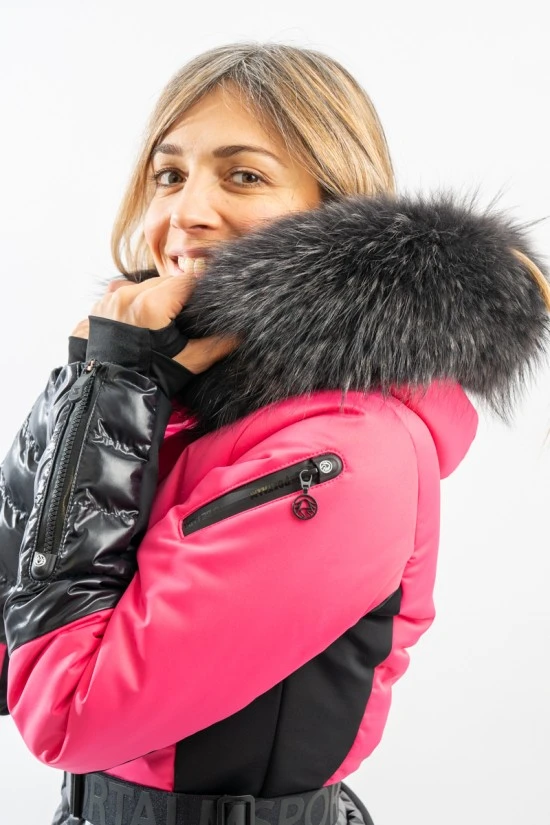 Grintosa e ricca di dettagli la giacca sci Dizzy di Sportalm. Realizzata in mixfabric, tessuto elasticizzato per garantire piena libertà di movimento e nylon, classico e raffinato ad impreziosirla. Altamente impermeabile e traspirante grazie alla membrana interna, è perfetta sotto ogni condizione. Imbottita in morbida ovatta è calda e confortevole. Dotata di sistema riflettente Recco, è ideale per chi ama praticare sport con stile ed in piena sicurezza.
