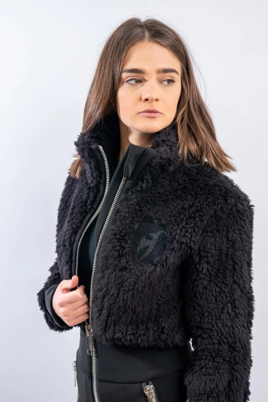 Tuta intera Eva firmata Toni Sailer. Realizzata con un mix di materiali sofisticati e funzionali. La parte superiore in lana vergine, lavorata ad effetto orsacchiotto, si fonde con la parte inferiore realizzata in Schoeller Svizzero, elasticizzato, idrorepellente ed antivento. Il collo in piedi e l’interno completamente foderato, offrono una sensazione di piacevole calore e morbidezza. A completare il capo le zip metallic look e la luminosità del tessuto. Moderna e pratica è un Must have per l’inverno 2022-23, per affrontare con stile ogni pista.